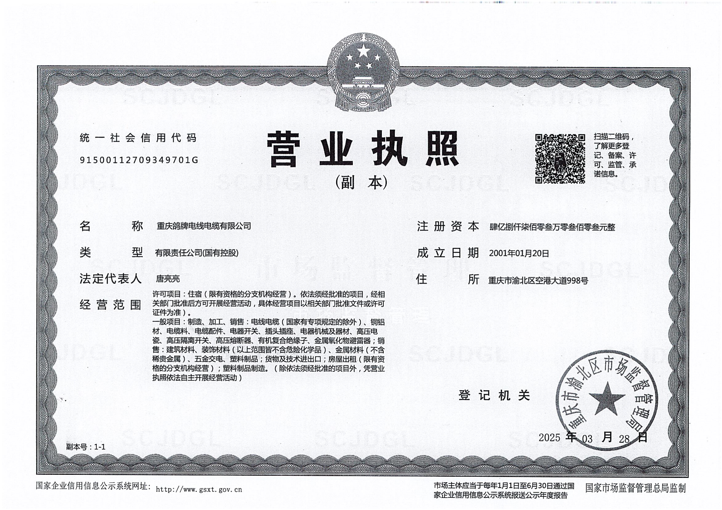 目前,公司鴿牌系列產(chǎn)品被評為“國家質(zhì)量AA信譽(yù)資質(zhì)”、“重慶名牌產(chǎn)品”;鴿牌公司被授予“全國五一勞動獎狀”、“國家高新技術(shù)企業(yè)”、“全國工業(yè)品牌培育示范企業(yè)”、“國家級綠色工廠”、“重慶老字號”等多項(xiàng)稱號,蟬聯(lián)11屆“中國線纜產(chǎn)業(yè)最具競爭力企業(yè)100強(qiáng)”,連續(xù)14年入選“重慶制造業(yè)企業(yè)100強(qiáng)”,連續(xù)17年入選“重慶企業(yè)100強(qiáng)”。